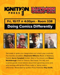 Ignition Press teases Shawn’s new creator owned graphic novel series at their 2025 Baltimore Comic-Con panel.